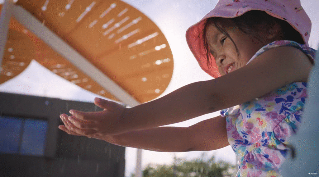 Two additional parks will receive Abrio by Vortex, a larger cooling hub with a more substantial footprint that blends shade structures and water play. Abrio is designed as a sustainable oasis that supports comfort and social connection across generations, with water conservation at the forefront.