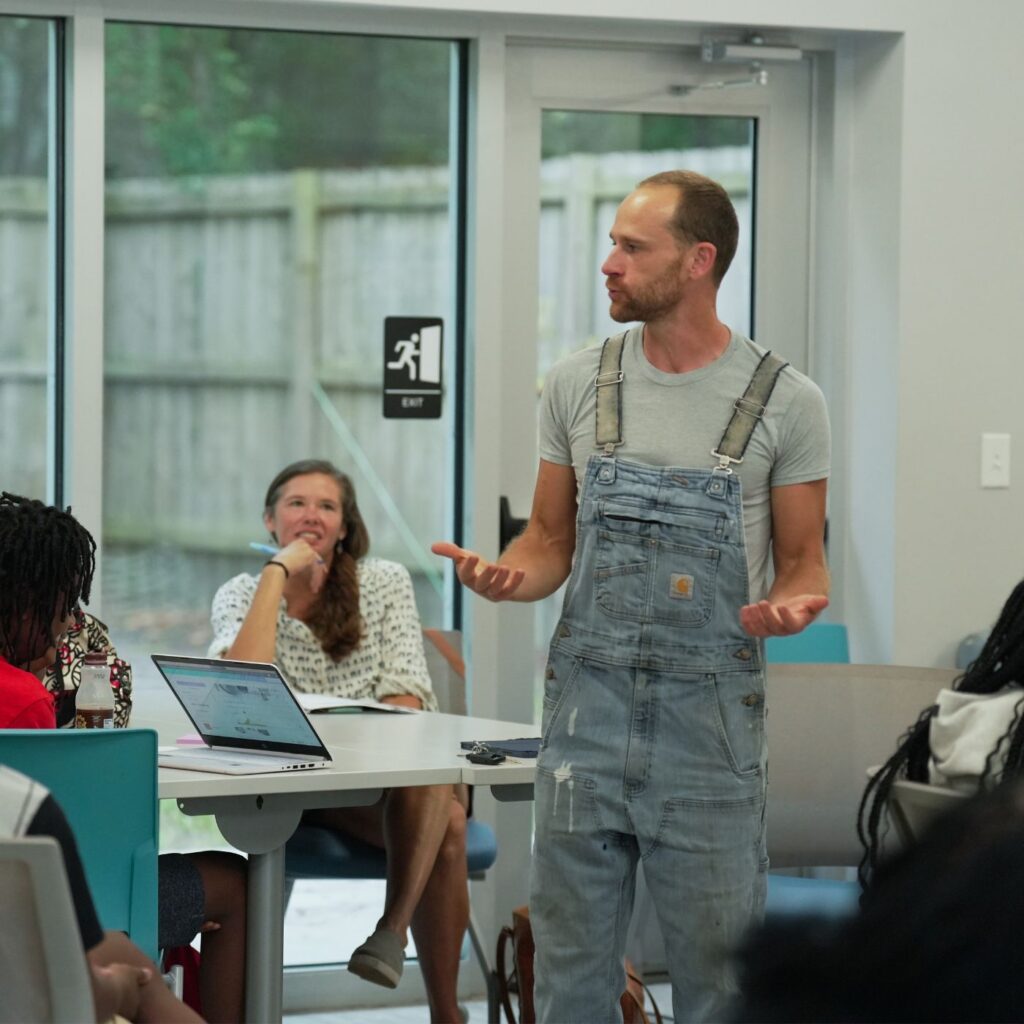 The dialogue turned practical when participants discussed what to do during hurricanes or crises. Facilitators reminded them, “If our bridges go down, we only have three days’ worth of food in Jacksonville’s grocery stores.” The group explored survival skills such as purifying water and preserving food. This pragmatic thread tied environmental learning to survival and community resilience. The youth realized that “people who can grow and preserve food aren’t scared—they’re prepared.”